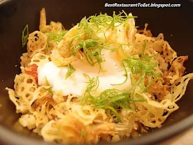 The next rice dish is the Shinjiro Fried Rice. Ingredient such as cube capsicum, celery and carrot are used to fried the rice, with a topping of thinly sliced fried lotus root and a poached eggs. Mixed them all; and your taste buds will be bursting with a different flavour and taste all in one.