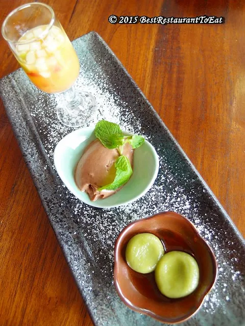 Finally the the desert we had was another trio delights which is the matcha mochi with honey, followed by the moist chocolate mousse, and the sourish fruit compote of strawberry, kiwi and orange juice.