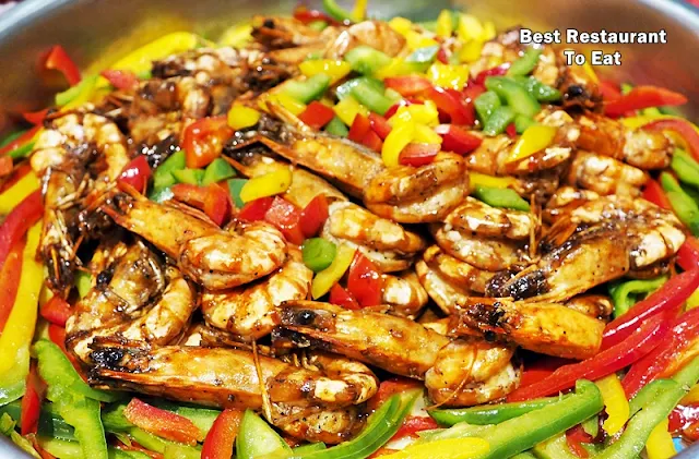Deep Fried Tiger Prawns With Butter and Garlic, Roasted Duck With Cherries and Giant Sausages.